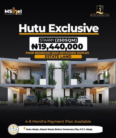 Hutu Abuja offers premium property options, including fully serviced plots of land, stunning luxury homes with cutting-edge designs, prime commercial spaces, and world-class amenities for a complete lifestyle.