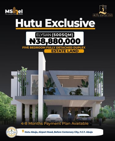 Located at Lugbe South District, Abuja and with 500 Hectares of Unmatched Elegance, Discover Luxury, Leisure, and Legacy at Hutu, Abuja.